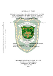 Ridho, Muhammad (2019) Pelaksanaan Perjanjian Pemborongan Proyek Pembangunan Pasar Pusat Padang Panjang Antara PT. Hutama Karya (Persero) Dengan PT. Mutiara Anugerah Mandiri. Masters thesis, Universitas Islam Riau.