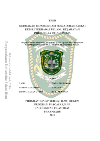 Maharani, Nadia (2019) Kebijakan Reformulasi Penjatuhan Sanksi Kebiri Terhadap Pelaku Kejahatan Phedofilia Di Indonesia. Masters thesis, Universitas Islam Riau.