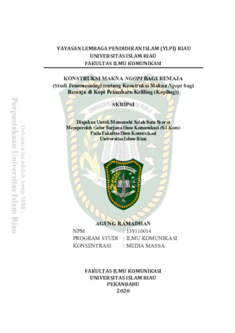 Ramadhan, Agung (2021) Konstruksi Makna Ngopi Bagi Remaja (Studi Fenomenologi Tentang Konstruksi Makna Ngopi Bagi Remaja Di Kopi Pekanbaru Keliling (Kopling). Other thesis, Universitas Islam Riau.