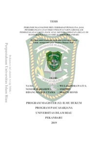 S, Wulan Indrawati (2019) Perlindungan Konsumen Terhadap Pengguna Jasa Penerbangan Atas Tiket Pesawat Lion Air Dalam Pembatalan (Cancel) Dan/ Atau Keterlambatan (Delay) Di Bandara Sultan Syarif Kasim II Pekanbaru. Masters thesis, Universitas Islam Riau.