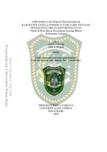 Ardiyansyah, Ardiyansyah (2019) Implementasi Peraturan Daerah Kabupaten Lingga Nomor 13 Tahun 2011 Tentang Penyelenggaraan Kepariwisataan (Studi Di Desa Benan Kecamatan Katang Bidare Kabupaten Lingga). Other thesis, Universitas Islam Riau.