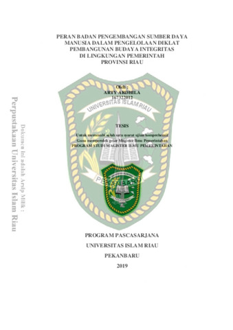 Ardhila, Arty (2019) Peran Badan Pengembangan Sumber Daya Manusia Dalam Pengelolaan Diklat Pembangunan Budaya Integritas Di Lingkungan Pemerintah Provinsi Riau. Masters thesis, Universitas Islam Riau.