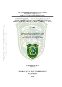 Ikhsan, Muhammad (2021) Kepemimpinan Kepala Desa Dalam Meningkatkan Partisipasi Masyarakat (Studi Pembangunan Di Desa Simpang Kubu Kecamatan Kampar Kabupaten Kampar). Other thesis, Universitas Islam Riau.