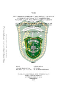 Bond, James (2019) Implementasi Peraturan Menteri Dalam Negeri Nomor 52 Tahun 2014 Tentang Pedoman Pengakuan Dan Perlindungan Masyarakat Hukum Adat (Studi Kelembagaan Desa Adat Pangkalan Indarung Kecamatan Singingi Kabupaten Kuantan Singingi). Masters thesis, Universitas Islam Riau.