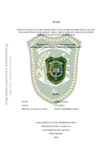 Julika, Riri (2019) Peranan Badan Usaha Milik Desa Dalam Mengembangkan Usaha Dan Ekonomi Masyarakat Desa Air Kulim Kecamatan Bathin Solapan Kabupaten Bengkalis. Masters thesis, Universitas Islam Riau.