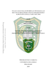Siswadi, Siswadi (2019) Tugas Camat Dalam Pembinaan Pengelolaan Keuangan Desa Di Kecamatan Singkep Barat Kabupaten Lingga Tahun 2017-2018. Masters thesis, Universitas Islam Riau.