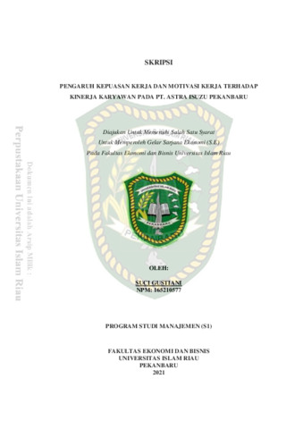 Gustiani, Suci (2021) Pengaruh Kepuasan Kerja Dan Motivasi Kerja Terhadap Kinerja Karyawan Pada PT. Astra Isuzu Pekanbaru. Other thesis, Universitas Islam Riau.