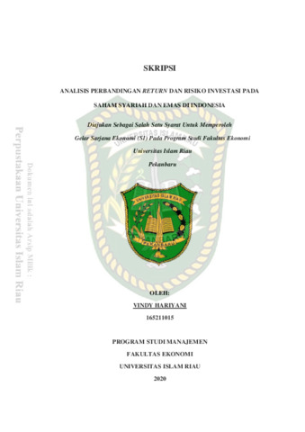 Hariyani, Vindy (2021) Analisis Perbandingan Return Dan Risiko Investasi Pada Saham Syariah Dan Emas Di Indonesia. Other thesis, Universitas Islam Riau.