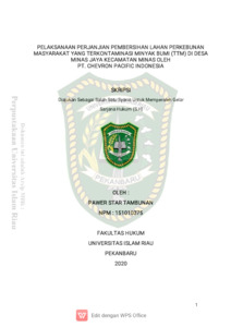 Tambunan, Pawer Star (2021) Pelaksanaan Perjanjian Pembersihan Lahan Perkebunan Masyarakat Yang Terkotaminasi Minyak Bumi (TTM) Di Desa Minas Jaya Kecamatan Minas Oleh PT. Chevron Pacific Indonesia. Other thesis, Universitas Islam Riau.