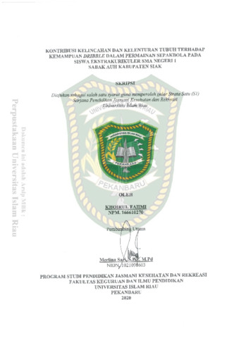 Kontribusi Kelincahan dan Kelenturan Tubuh Terhadap Kemampuan Dribble Dalam Permainan Sepakbola Pada Siswa Ekstrakurikuler SMA Negeri 1 Sabak Auh Kabupaten Siak