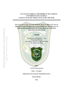 Ramadani, Fanny (2021) Pelaksanaan Pelayanan Publik Dengan Menggunakan Prinsip Good Governance Di Kantor Unit Pelaksanaan Teknis Dinas Kependudukan Dan Pencatatan Sipil Kecamatan Sukajadi. Other thesis, Universitas Islam Riau.
