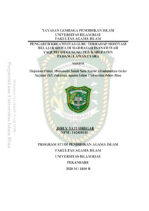 Siregar, Jerly Yati (2020) Pengaruh Kreativitas Guru Terhadap Motivasi Belajar Siswa Di Madrasah Tsanawiyah Yaqubiyah Gunung Tua Kabupaten Padang Utara. Other thesis, Universitas Islam Riau.