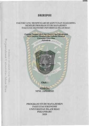 Asmida, Asmida (2020) Faktor Yang Mempengaruhi Keputusan Mahasiswa Memilih Program Studi Manajemen Fakultas Ekonomi Universitas Islam Riau. Other thesis, Universitas Islam Riau.