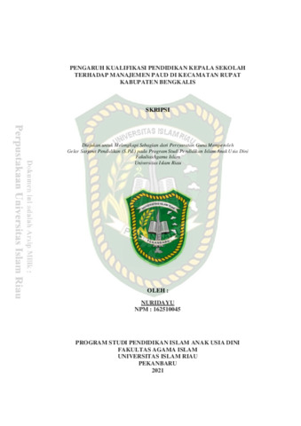 Nuridayu, Nuridayu (2021) Pengaruh Kualifikasi Pendidikan Kepala Sekolah Terhadap Manajemen PAUD Di Kecamatan Rupat Kabupaten Bengkalis. Other thesis, Universitas Islam Riau.