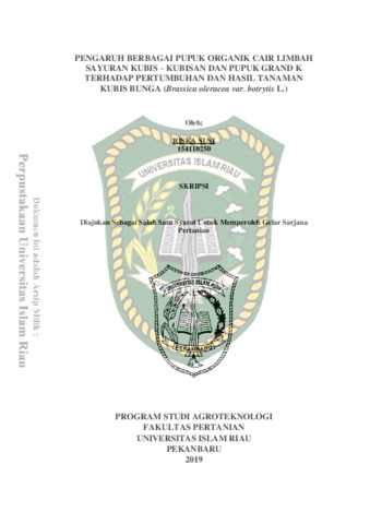 Susi, Riska (2019) Pengaruh Berbagai Pupuk Organik Cair Limbah Sayuran Kubis – Kubisan Dan Pupuk Grand K Terhadap Pertumbuhan Dan Hasil Tanaman Kubis Bunga (Brassica Oleracea Var. Botrytis L.). Other thesis, Universitas Islam Riau.