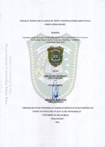 Radhana, Arif Putra (2021) Tingkat Kesegaran Jasmani Siswa Ekstrakurikuler Futsal SMKN 4 Pekanbaru. Other thesis, Universitas Islam Riau.