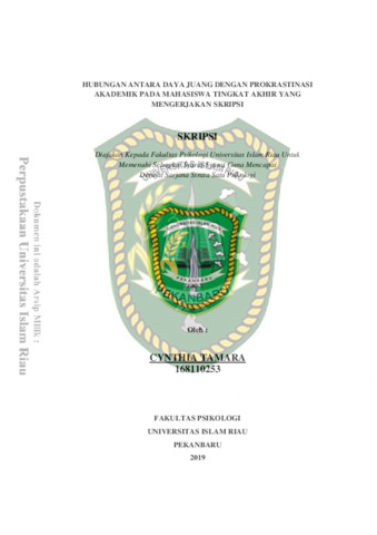 Tamara, Cynthia (2019) Hubungan Antara Daya Juang Dengan Prokrastinasi Akademik Pada Mahasiswa Tingkat Akhir Yang Mengerjakan Skripsi. Other thesis, Universitas Islam Riau.
