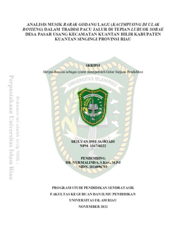 Sasriadi, Deilyan Dwi (2021) Analisis Musik Rarak Godang Lagu (Kacimpuong Di Ulak Botieng) Dalam Tradisi Pacu Jalur Di Tepian Lubuok Sobae Desa Pasar Usang Kecamatan Kuantan Hilir Kabupaten Kuantan Singingi Provinsi Riau. Other thesis, Universitas Islam Riau.