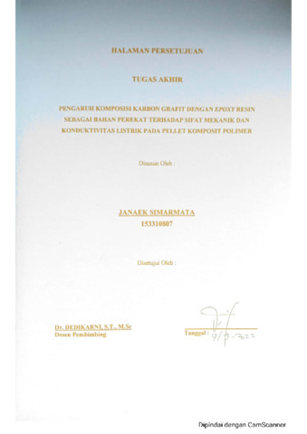 Panuh, Dedikarni Pengaruh Komposisi Karbon Grafit dengan Epoxy resin sebagai Bahan Perekat terhadap Sifat Mekanik dan Konduktifitas Listrik pada pellet Komposit Polimer. UIR.