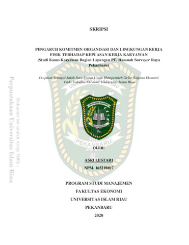 Lestari, Asri (2020) Pengaruh Komitmen Organisasi dan Lingkungan Kerja Fisik Terhadap Kepuasan Kerja Karyawan (Studi Kasus Karyawan Bagian Lapangan PT. Hasanah Surveyor Raya Pekanbaru). Other thesis, Universitas Islam Riau.