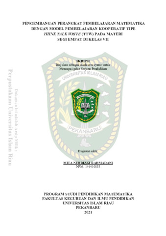 Rahmadani, Mita Nurrizki (2021) Pengembangan Perangkat Pembelajaran Matematika Dengan Model Pembelajaran Kooperatif Tipe Think Talk Write (TTW) Pada Materi Segi Empat Di Kelas VII. Other thesis, Universitas Islam Riau.