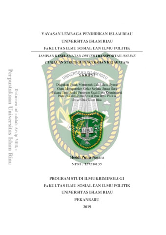 Negara, Meddi Putra (2019) Jaminan Keselamatan Driver Transportasi Online (Tinjauan Strategi Pencegahan Kejahatan). Other thesis, Universitas Islam Riau.