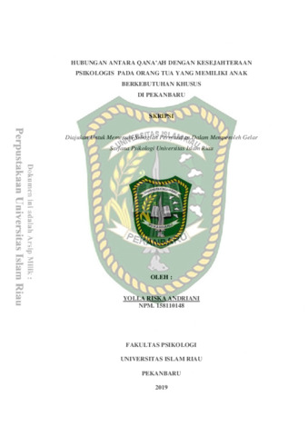 Andriani, Yolla Riska (2019) Hubungan Antara Qana'ah Dengan Kesejahteraan Psikologis Pada Orangtua Yang Memiliki Anak Berkebutuhan Khusus Di Pekanbaru. Other thesis, Universitas Islam Riau.