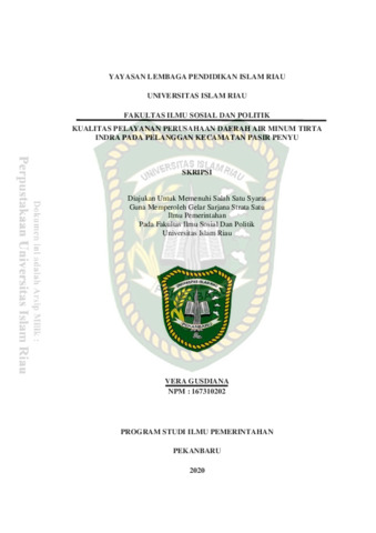 Gusdiana, Vera (2020) Kualitas Pelayanan Perusahaan Daerah Air Minum Tirta Indra Pada Pelanggan Kecamatan Pasir Penyu. Other thesis, Universitas Islam Riau.