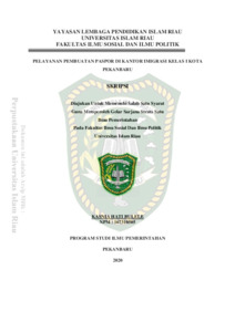 Bulele, Kasnia Hati (2020) Pelayanan Pembuatan Paspor Di Kantor Imigrasi Kelas I Kota Pekanbaru. Other thesis, Universitas Islam Riau.