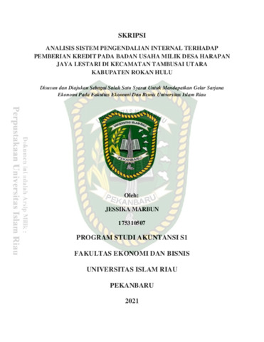 Marbun, Jessika (2021) Analisis Sistem Pengendalian Internal Terhadap Pemberian Kredit Pada Badan Usaha Milik Desa (BUMDes) Harapan Jaya Lestari Di Kecamatan Tambusai Utara Kabupaten Rokan Hulu. Other thesis, Universitas Islam Riau.