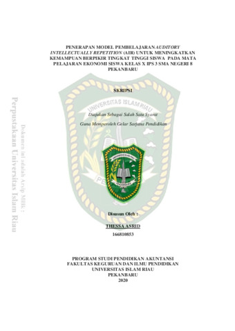 Penerapan Model Pembelajaran Auditory Intellectually Repetition (Air) Untuk Meningkatkan Kemampuan Berpikir Tingkat Tinggi Siswa Pada Mata Pelajaran Ekonomi Siswa Kelas X IPS 3 SMA Negeri 8 Pekanbaru