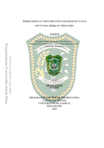 Rianti, Meilia (2022) Perbandingan Metode Steganografi DCT Dan DWT Pada Berkas Video Mp4. Other thesis, Universitas Islam Riau.