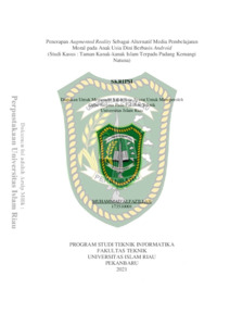 Alfazillah, Muhammad (2022) Penerapan Augmented Reality Sebagai Alternatif Media Pembelajaran Moral Pada Anak Usia Dini Berbasis Android (Studi Kasus : Taman Kanak-kanak Islam Terpadu Padang Kemangi Natuna). Other thesis, Universitas Islam Riau.