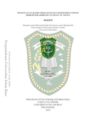 Pratama, Rian (2022) Pemanfaatan Radio Frekuensi Pada Monitoring Sistem Hidroponik Berbasis Internet Of Things. Other thesis, Universitas Islam Riau.