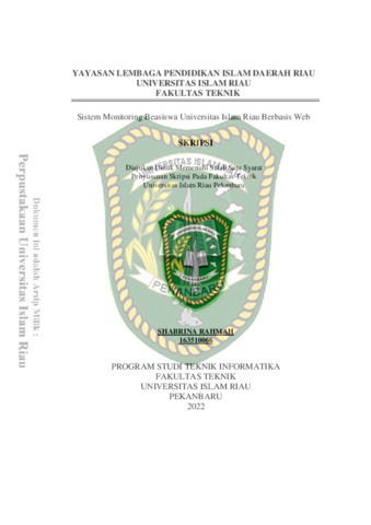 Rahmah, Shabrina (2022) Sistem Monitoring Beasiswa Universitas Islam Riau Berbasis Web. Other thesis, Universitas Islam Riau.