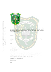Amanullah, Rofiq (2020) Analisis Kisi-kisi Soal Ujian Akhir Semester Ganjil Mata Pelajaran Bahasa Indonesia Kelas VIII SMP YLPI Pekanbaru Tahun Ajaran 2017/2018. Other thesis, Universitas Islam Riau.
