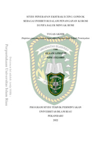 Afrizon, Akram (2022) Studi Penerapan Ekstrak Eceng Gondok Sebagai Inhibitor Dalam Penanganan Korosidi Pipa Salur Minyak Bumi. Other thesis, Universitas Islam Riau.
