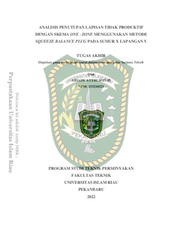Atthurmuzi, Ariady (2022) Analisis Penutupan Lapisan Tidak Produktif Dengan Skema One –Zone Menggunakan Metode Squeeze Balance Plug Pada Sumur X Lapangan Y. Other thesis, Universitas Islam Riau.