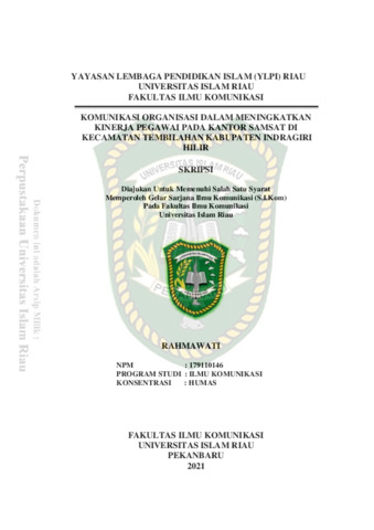 Rahmawati, Rahmawati (2021) Komunikasi Organisasi Dalam Meningkatkan Kinerja Pegawai Pada Kantor Samsat Di Kecamatan Tembilahan Kabupaten Indragiri Hilir. Other thesis, Universitas Islam Riau.