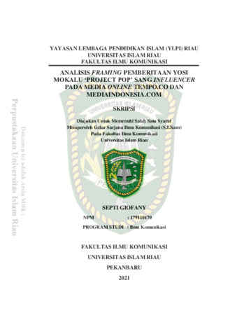 Giofany, Septi (2021) Analisis Framing Pemberitaan Yosi Mokalu ‘Project Pop’ Sang Influencer Pada Media Online Tempo.co Dan Mediaindonesia.com. Other thesis, Universitas Islam Riau.