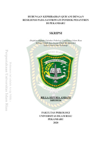 Hubungan Kepribadian Qur'ani Dengan Resiliensi Pada Santriwati Pondok Pesantren Di Pekanbaru