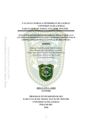 Amri, Hidayatul (2020) Pola Interaksi Residivis Di Lembaga Pemasyarakatan (Studi Kasus Residivis Pencurian Kendaraan Bermotor Di Lembaga Pemasyarakatan Kelas Iia Pekanbaru). Other thesis, Universitas Islam Riau.