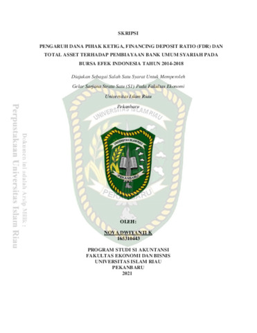 Kumendong, Nova Dwiyanti (2021) Pengaruh Dana Pihak Ketiga, Financing Deposit Ratio (FDR) Dan Total Asset Terhadap Pembiayaan Bank Umum Syariah Pada Bursa Efek Indonesia Tahun 2014-2018. Other thesis, Universitas Islam Riau.