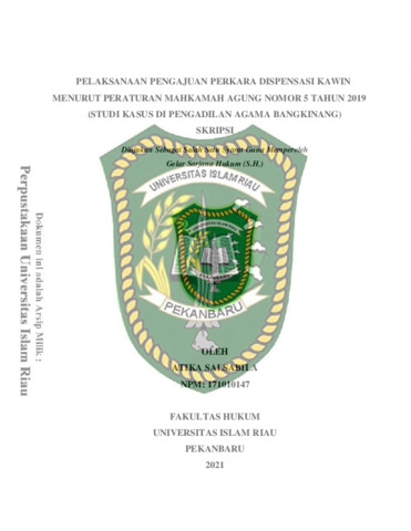 Salsabila, Atika (2021) Pelaksanaan Pengajuan Perkara Dispensasi Kawin Menurut Peraturan Mahkamah Agung Nomor 5 Tahun 2019 (Studi Kasus Di Pengadilan Agama Bangkinang). Other thesis, Universitas Islam Riau.