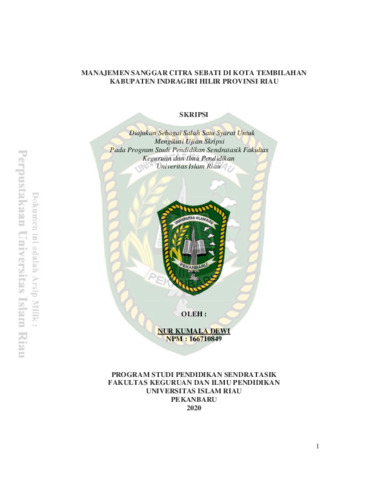 Dewi, Nur Kumala (2020) Manajemen Sanggar Citra Sebati Di Kota Tembilahan Kabupaten Indragiri Hilir Provinsi Riau. Other thesis, Universitas Islam Riau.