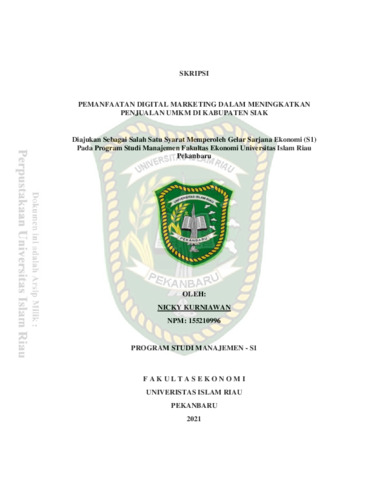 Kurniawan, Nicky (2021) Pemanfaatan Digital Marketing Dalam Meningkatkan Penjualan UMKM Di Kabupaten Siak. Other thesis, Universitas Islam Riau.