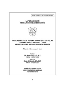 Puri, Anas and Mildawati, Roza (2016) Validasi Metode Perencanaan Sistem Pelat Terpaku pada Lempung Lunak Menggunakan Metode Elemen Hingga (Tahun Kedua). Universitas Islam Riau. (Unpublished)