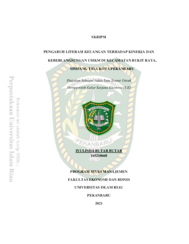 Butar-Butar, Iyulinda (2021) Pengaruh Literasi Keuangan Terhadap Kinerja Dan Keberlangsungan UMKM Di Kecamatan Bukit Raya, Simpang Tiga Kota Pekanbaru. Other thesis, Universitas Islam Riau.