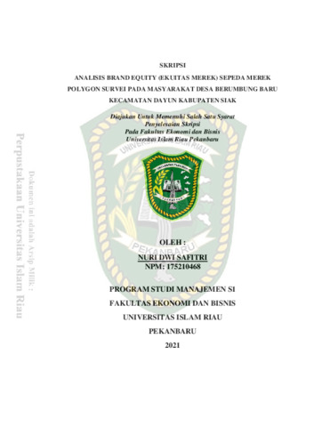Safitri, Nuri Dwi (2021) Analisis Brand Equity ( Ekuitas Merek ) Sepeda Merek Polygon Survei Pada Masyarakat Desa Berumbung Baru Kecamatan Dayun Kabupaten Siak. Other thesis, Universitas Islam Riau.