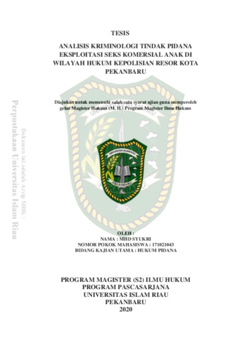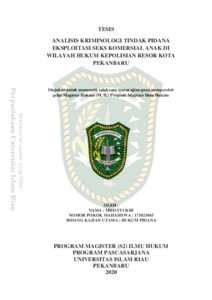 Syukri, Mhd (2020) Analisis Kriminologi Tindak Pidana Eksploitasi Seks Komersial Anak Di Wilayah Hukum Kepolisian Resor Kota Pekanbaru. Other thesis, Universitas Islam Riau.